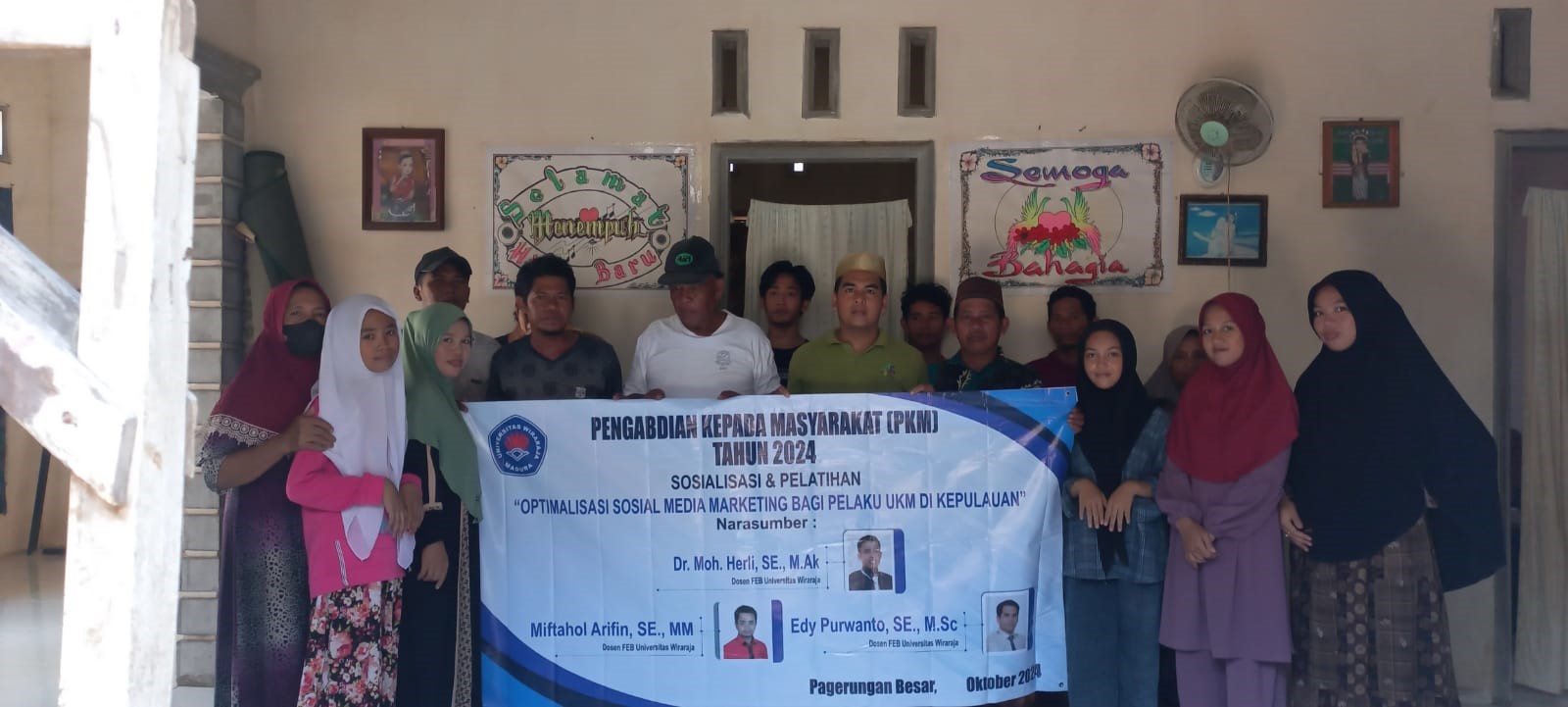Ketua Tim Pengabdi, Dr. Mohammad Herli, SE., M.Ak, menyampaikan bahwa kegiatan ini merupakan wujud kepedulian Dosen dari Universitas Wiraraja kepada pelaku ukm yang di Desa Pagerunan Besar. Kegiatan ini diharapkan dapat memberikan wawasan kepada para pelaku usaha agar bisa mengoptimalkan usaha mereka melalui pemanfaatan social media marketing.